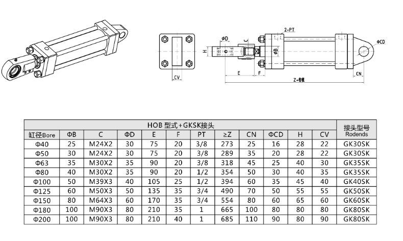 標準HOB+CA型 單耳型+GKSK關節耳環接頭外形安裝尺寸圖