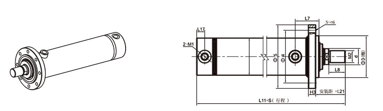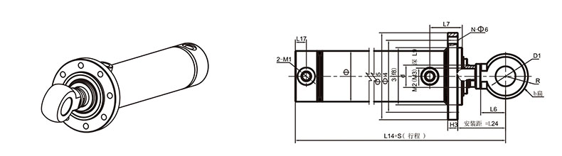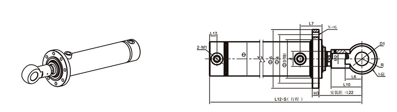 活塞桿端為內螺紋桿頭耳環連接