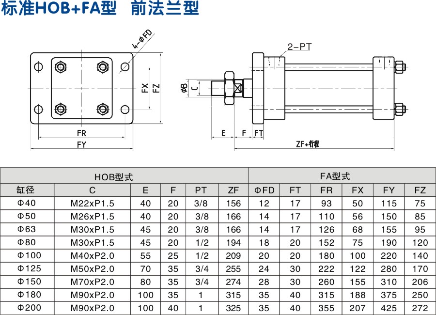 HOB前法蘭模具油缸 外形安裝尺寸圖