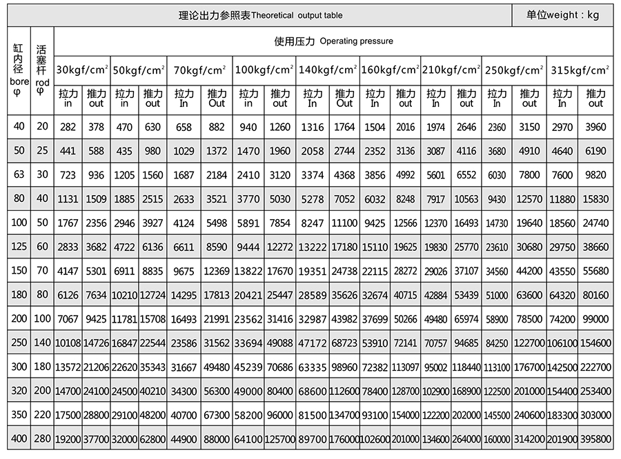 3)缸內徑和活塞桿直徑的單位為毫米mm。