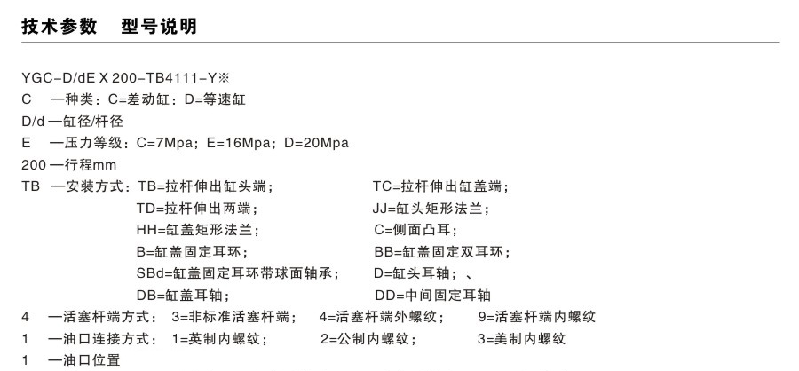 YGC/YGD拉桿油缸型號(hào)說(shuō)明