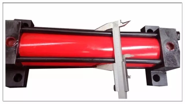 3)測量油缸的缸筒內徑和外徑,根據壁厚的尺寸,我們計算使用壓力。